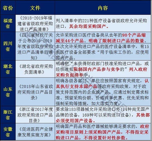 除了天津市,乳酸菌也整理一下近期以來各省采購進口設(shè)備的政策。2017年全國對于支持國產(chǎn)的呼聲達到了頂峰,預(yù)計2018年,作為長期被進口品牌壟斷的醫(yī)療器械行業(yè),也成為了國家推進國產(chǎn)產(chǎn)品的一個重點領(lǐng)域。
