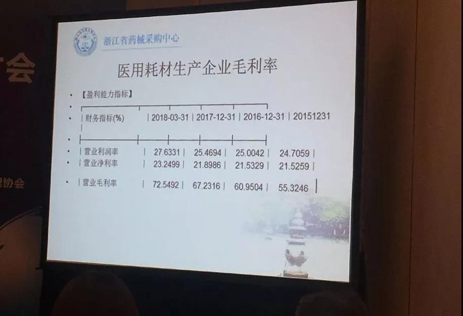 從其在演講中公布的醫(yī)用耗材生產(chǎn)企業(yè)毛利率近四年以來(lái)的變化情況,一個(gè)明顯的趨勢(shì)是,生產(chǎn)企業(yè)的營(yíng)業(yè)毛利率一直在上升,而營(yíng)業(yè)利潤(rùn)率起伏不大。這意味著,兩者的差值在隨之?dāng)U大,從2015年的30%增長(zhǎng)到2018年的45%。一定程度上,這中間的差值代表著企業(yè)銷售和管理等費(fèi)用的增加,而招標(biāo)限價(jià)也是為了降低這中間的費(fèi)用。