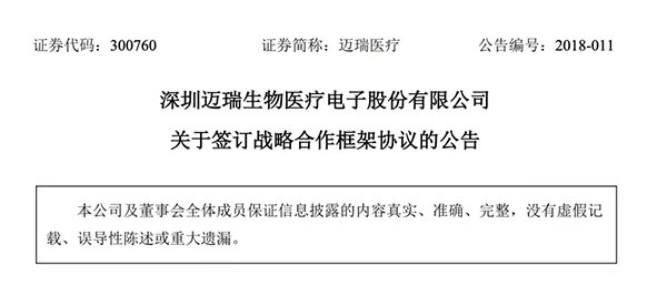 今天,邁瑞醫療(全稱:深圳邁瑞生物醫療電子股份有公司)發布公告,稱與深圳市光明區政府達成重大戰略合作,要建公司總部及制造基地。