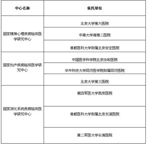 附第一批國家臨床醫(yī)學研究中心名單