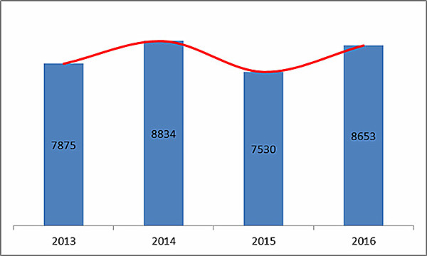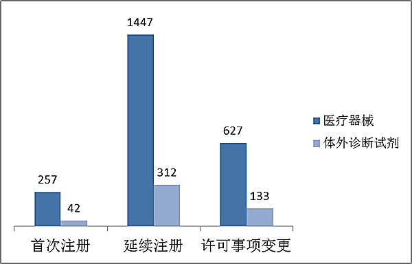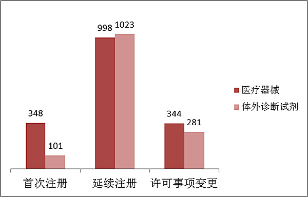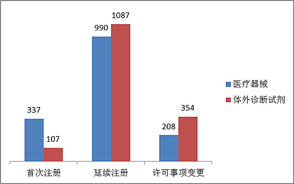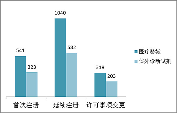 2016年,食品藥品監(jiān)管總局共受理醫(yī)療器械注冊、延續(xù)注冊和許可事項變更申請8920項,與2015年相比注冊受理項目減少5.1%。