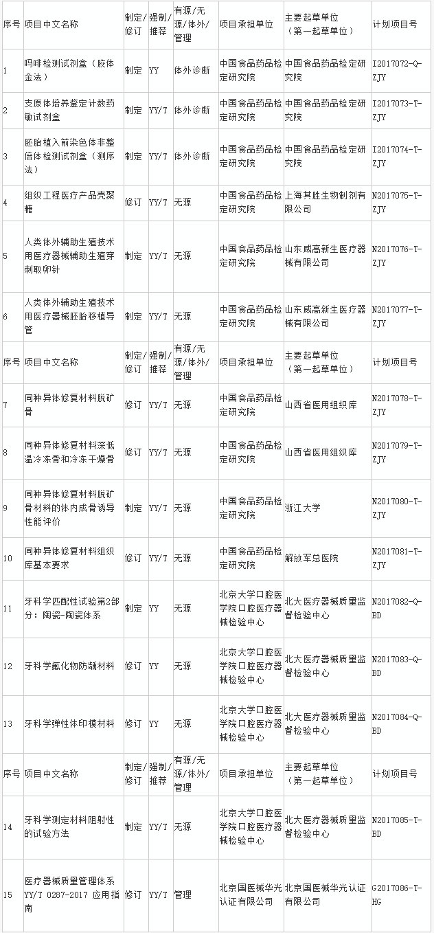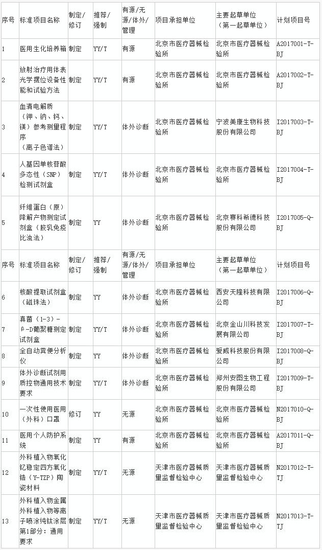 總局印發(fā)2017年醫(yī)療器械行業(yè)標(biāo)準(zhǔn)制修訂項(xiàng)目