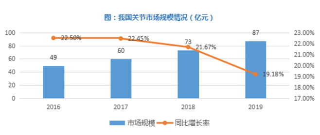 據(jù)Eshare醫(yī)械匯測算,2019年關(guān)節(jié)市場銷售規(guī)模約為87億元,較2018年增長19.18%。另外,據(jù)了解,我國關(guān)節(jié)手術(shù)患者滿意率不高,并且非常依賴醫(yī)生的經(jīng)驗(yàn)和手術(shù)技巧,而穩(wěn)定性、精準(zhǔn)度都較高的骨科機(jī)器人則是可以解決這一問題。