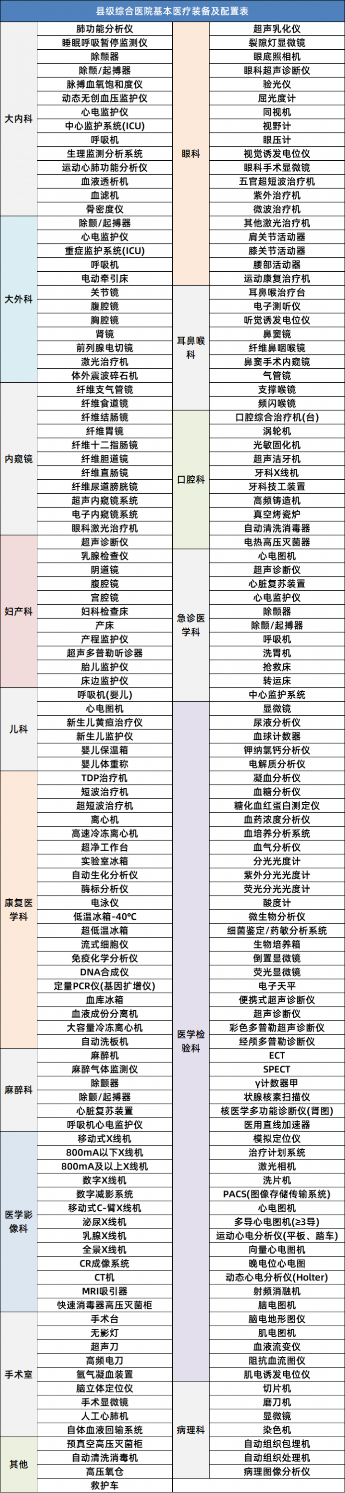縣級醫院對醫療設備的需求大致如此。鄉鎮衛生院目前的設備配置標準,我們可以參考一下浙江省:
