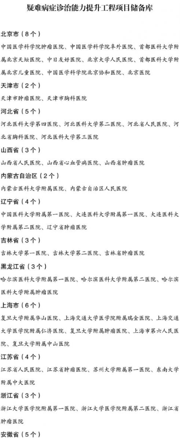 國家加大投入推動醫院改革,推進分級診療,疑難病癥診治能力提升工程項目儲備庫名單: