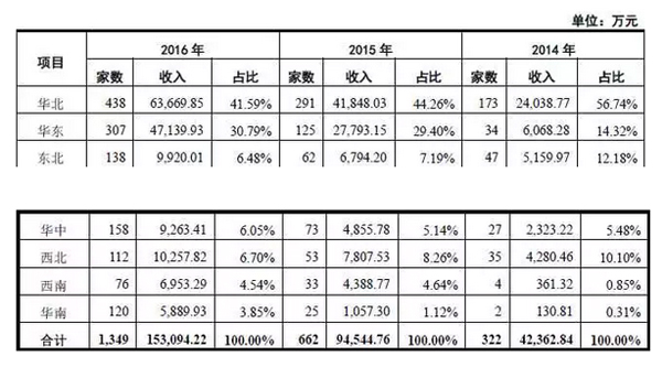隨著公司授權(quán)分銷(xiāo)品牌和產(chǎn)品線的持續(xù)增加,與公司合作的下游經(jīng)銷(xiāo)商數(shù)量也快速上升,經(jīng)銷(xiāo)商數(shù)量由2014年的322家,增長(zhǎng)到2016年的1,349家,呈快速增長(zhǎng)趨勢(shì),也表明公司在產(chǎn)業(yè)鏈上的地位不斷加強(qiáng)提升。本公司經(jīng)銷(xiāo)商按地域分布情況如下: