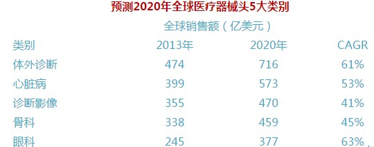 據預測:全球醫療器械公司到2020年競爭格局將會依照這樣的排名——強生居首,西門子、美敦力、羅氏、柯惠分列第二至第五位。