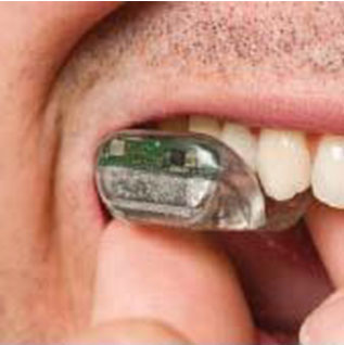 與骨錨式助聽(tīng)器相似,麥克風(fēng)會(huì)將信號(hào)傳輸給后磨牙附著裝置,信號(hào)使牙齒和頭皮震動(dòng)進(jìn)而刺激耳蝸。和植入耳蝸不同,SoundBite根本不需要頭皮上鉆孔或者牙齒植入。