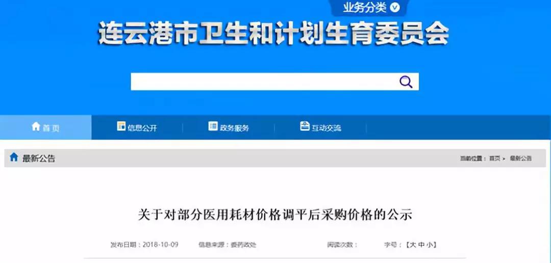 10月9日,連云港市衛(wèi)生和計(jì)劃生育委員會發(fā)布了《關(guān)于對部分醫(yī)用耗材價格調(diào)平后采購價格的公示》,公示了連云港市2017年集中采購過程中邁瑞、威高、強(qiáng)生、西門子等844家公司、10506種醫(yī)用耗材根據(jù)南京、蘇州、泰州市最低價調(diào)整后的價格調(diào)平后的采購價格。