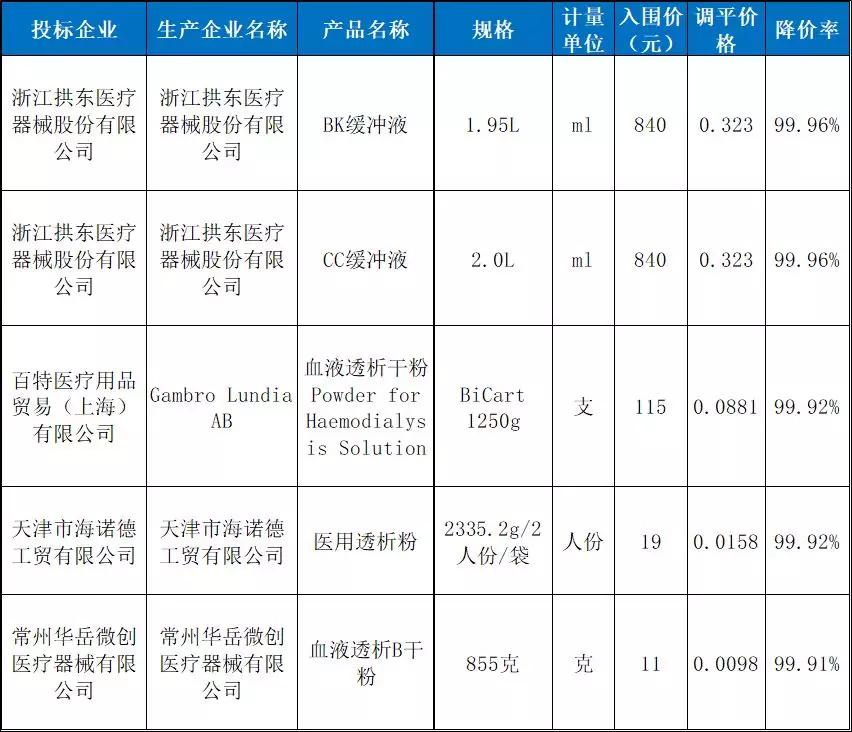 其中浙江拱東醫(yī)療器械股份有限公司生產(chǎn)的BK緩沖液和CC緩沖液降價幅度最高,降價率竟然高達(dá)99.96%!除此之外,其他醫(yī)用耗材的降價幅度也相當(dāng)之高,文件所涉及的耗材: