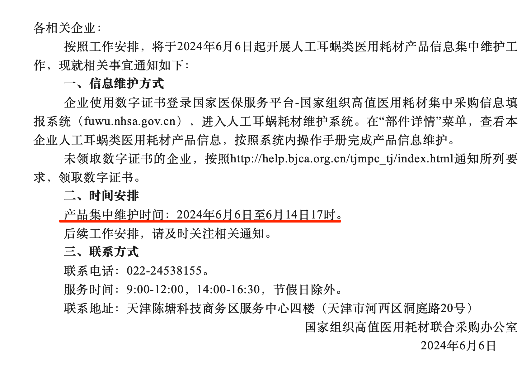 《通知》明確,將于2024年6月6日起開展人工耳蝸類醫(yī)用耗材產(chǎn)品信息集中維護工作。產(chǎn)品集中維護時間為2024年6月6日至6月14日17時。