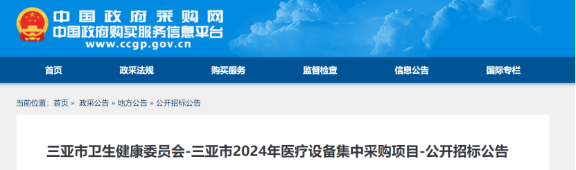 近日,中國政府采購網(wǎng)發(fā)布《三亞市衛(wèi)生健康委員會(huì)-三亞市2024年醫(yī)療設(shè)備集中采購項(xiàng)目-公開招標(biāo)公告》。