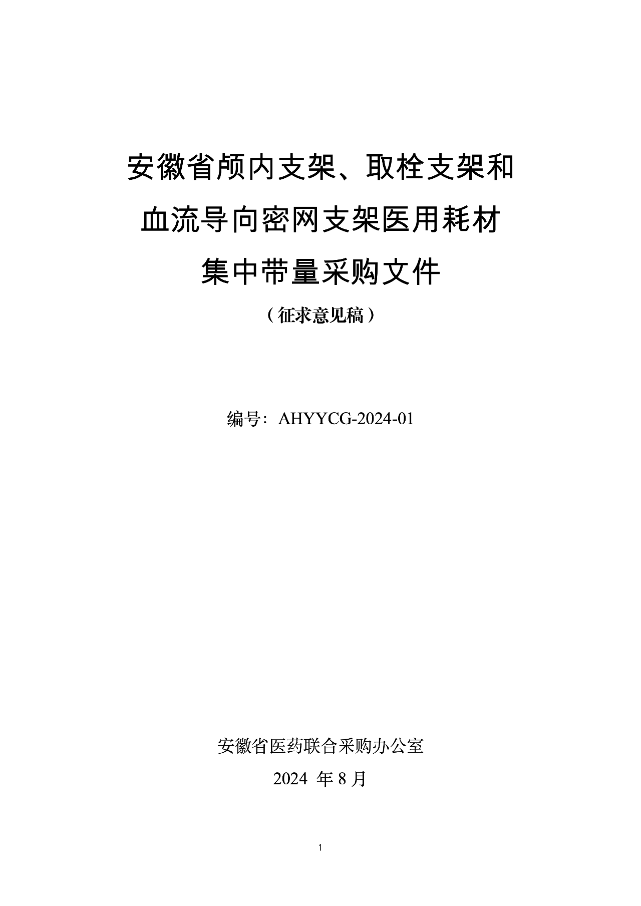 《征求意見稿》顯示,安徽省醫(yī)藥價(jià)格和集中采購中心受安徽省醫(yī)藥聯(lián)合采購辦公室委托,組織開展全省顱內(nèi)支架、取栓支架和血流導(dǎo)向密網(wǎng)支架醫(yī)用耗材集中帶量采購,采購周期為2年。