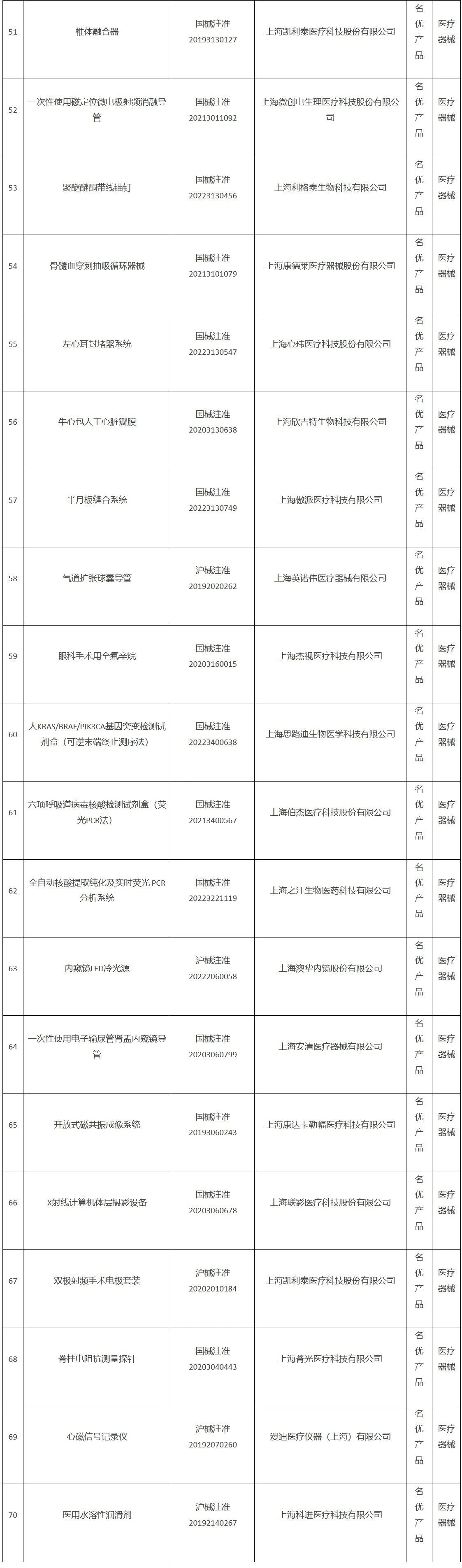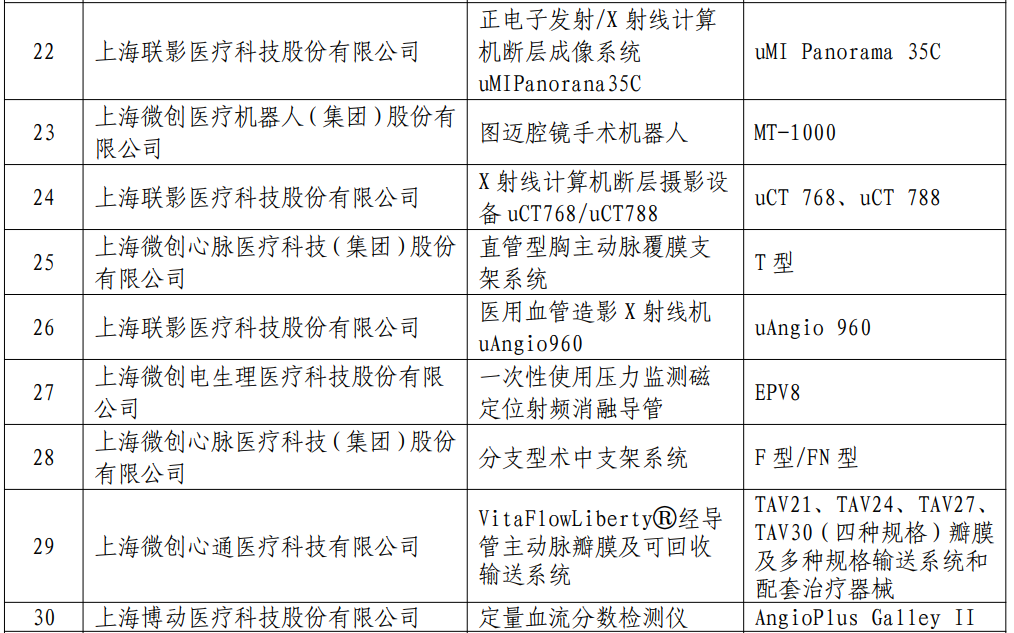 《2022年度上海市生物醫藥“新優藥械”產品目錄》(器械部分)