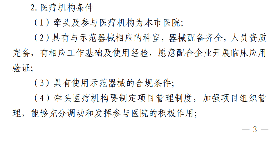 申報2023年上海市創新醫療器械應用示范項目的生產企業、醫療機構、研究單位需要滿足一定的條件。例如,申報生產企業須為“本市注冊的企業,有固定的生產和研發場地,有專職核心研發團隊”,還要“企業持有項目涉及醫療器械的注冊證和生產許可證,且注冊證持有人與申報企業一致”。
