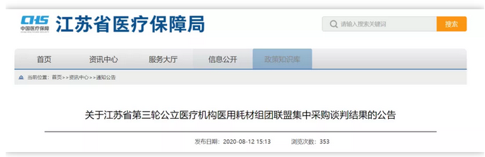 在此之前,江蘇省已完成兩次省級耗材帶量采購。