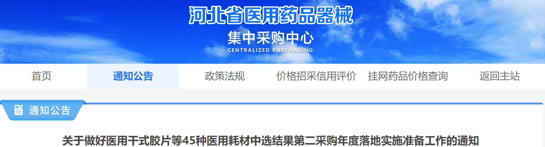 近日,河北省醫(yī)用藥品器械集中采購中心發(fā)布《關(guān)于做好醫(yī)用干式膠片等45種醫(yī)用耗材中選結(jié)果第二采購年度落地實施準(zhǔn)備工作的通知》(簡稱《通知》)。