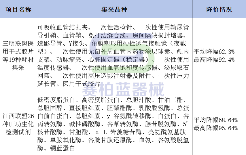 根據(jù)《通知》,三明聯(lián)盟醫(yī)用干式膠片等19種耗材與江西聯(lián)盟26種肝功生化檢測試劑將于2025年1月1日起在河北省執(zhí)行新的采購年度,具體品種與降價情況如下: