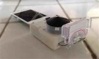 15min之后,將試劑盒插入與手機相連的傳感器中,再通過智能手機相機以及固定光源來幫助讀取生物傳感器所能看到的結果。