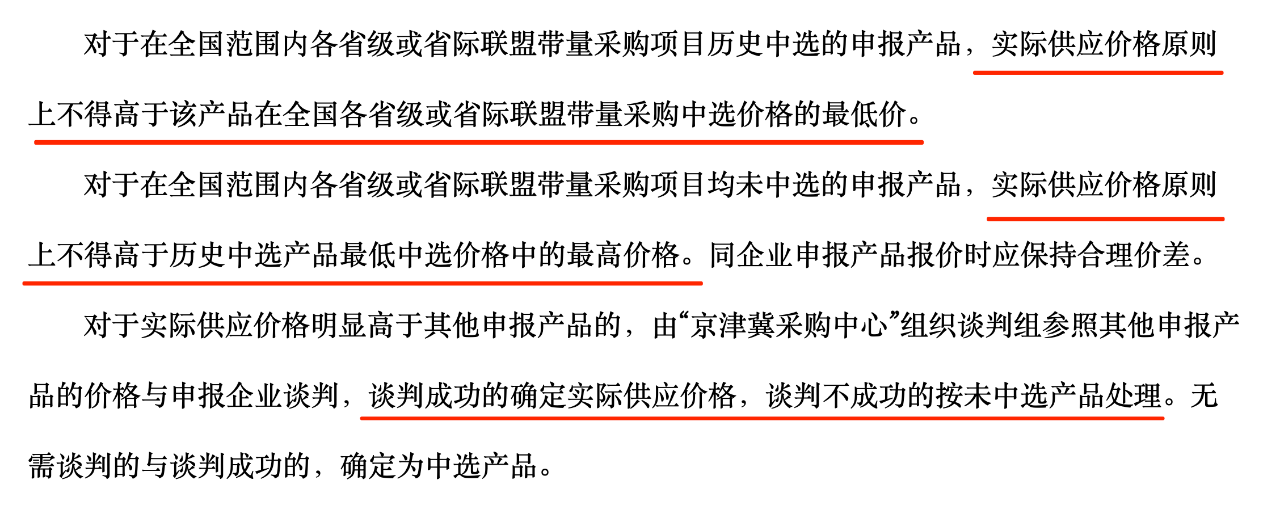 采購周期內(nèi),中選企業(yè)的非中選產(chǎn)品按不高于本項(xiàng)目該企業(yè)同品種最高中選價(jià)格掛網(wǎng)的,且不高于其在其他省級或省際聯(lián)盟帶量采購中選價(jià)格的,可視為中選產(chǎn)品;未中選企業(yè)的產(chǎn)品按不高于本項(xiàng)目同品種最高中選價(jià)掛網(wǎng)的,在醫(yī)療機(jī)構(gòu)考核時(shí)不視為非中選產(chǎn)品。