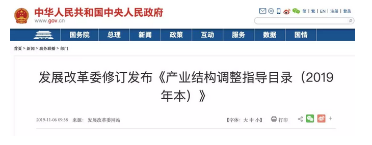 《產(chǎn)業(yè)結(jié)構(gòu)調(diào)整指導目錄(2019年本)》已經(jīng)2019年8月27日第2次委務會議審議通過,現(xiàn)予公布,自2020年1月1日起施行。同時,《產(chǎn)業(yè)結(jié)構(gòu)調(diào)整指導目錄(2011年本)(修正)》廢止。
