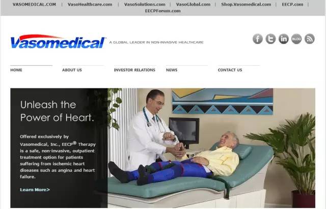 Vasomedical公司是體外反搏 (ECP) 治療的黃金標(biāo)準(zhǔn)—EECP® Therapy 系統(tǒng)的擁有者,它是一家多元化的醫(yī)療科技公司,專注于醫(yī)療器材的設(shè)計、制造于銷售。