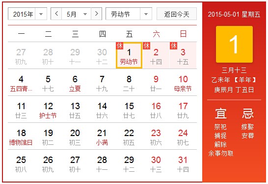 2015年北京華康普美科技有限公司,“五一勞動節(jié)”假期為:5月1日(星期五)至5月3日(星期日)共放假3天,5月4日(星期一)正常上班。