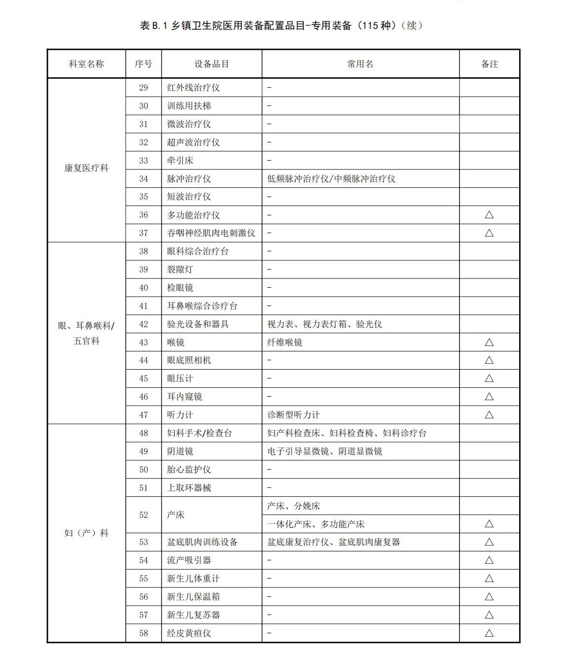 《標準》結合鄉鎮衛生院發展現狀,將醫用裝備分為通用、專用兩類,明確了22種鄉鎮衛生院通用醫用裝備配置品目,包括無創血壓測量設備、監護設備、心電圖機、超聲診斷儀等,以及115種鄉鎮衛生院專用醫用裝備配置品目。