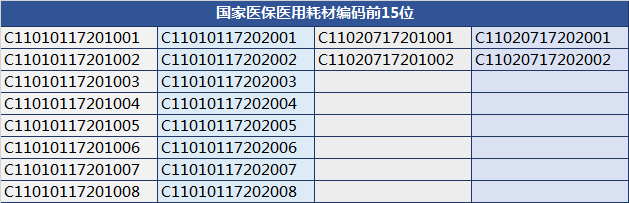 本次集中帶量聯動采購品種為吻合器類醫用耗材,具體為管型/端端吻合器、痔吻合器兩類,釘材質為鈦合金或純鈦,國家醫保局醫保醫用耗材編碼前15位為: