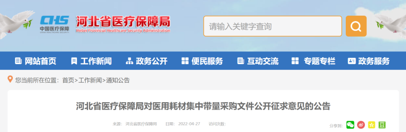 《公告》指出,本次集中帶量采購以執行日起,兩年為一個采購周期。河北省公立醫療機構和部分醫療機構作為醫用耗材采購主體,通過河北省醫用藥品器械集中采購平臺采購。醫保定點社會辦醫療機構可自愿參加。