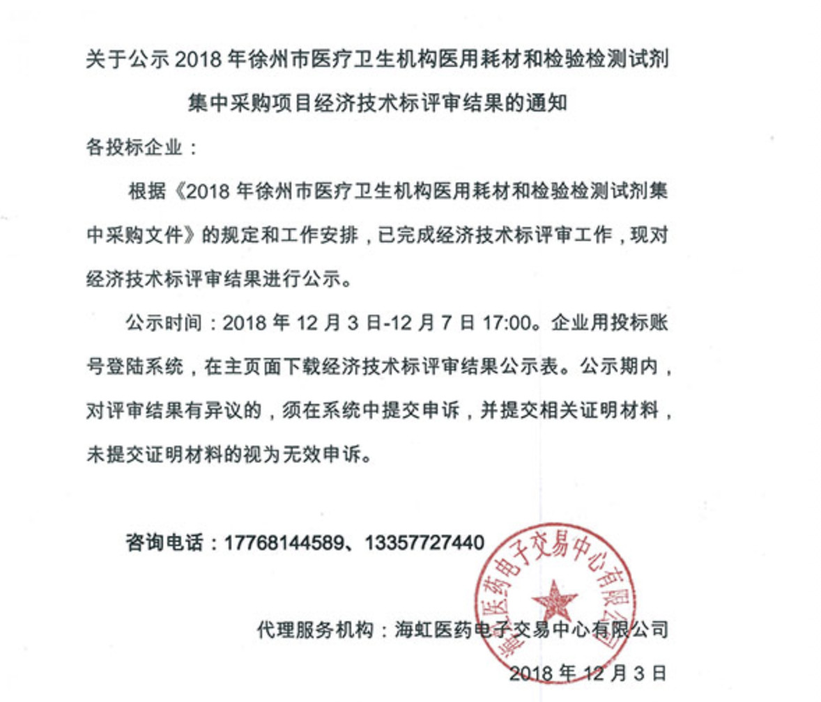12月3日下午,江蘇省徐州市發布《關于公示2018年醫用耗材和檢驗檢測試劑集中采購項目經濟技術標評審結果的通知》,對6萬多個普通耗材(試劑)產品評審結果進行公示,數據顯示,超過兩萬個產品未通過評審。