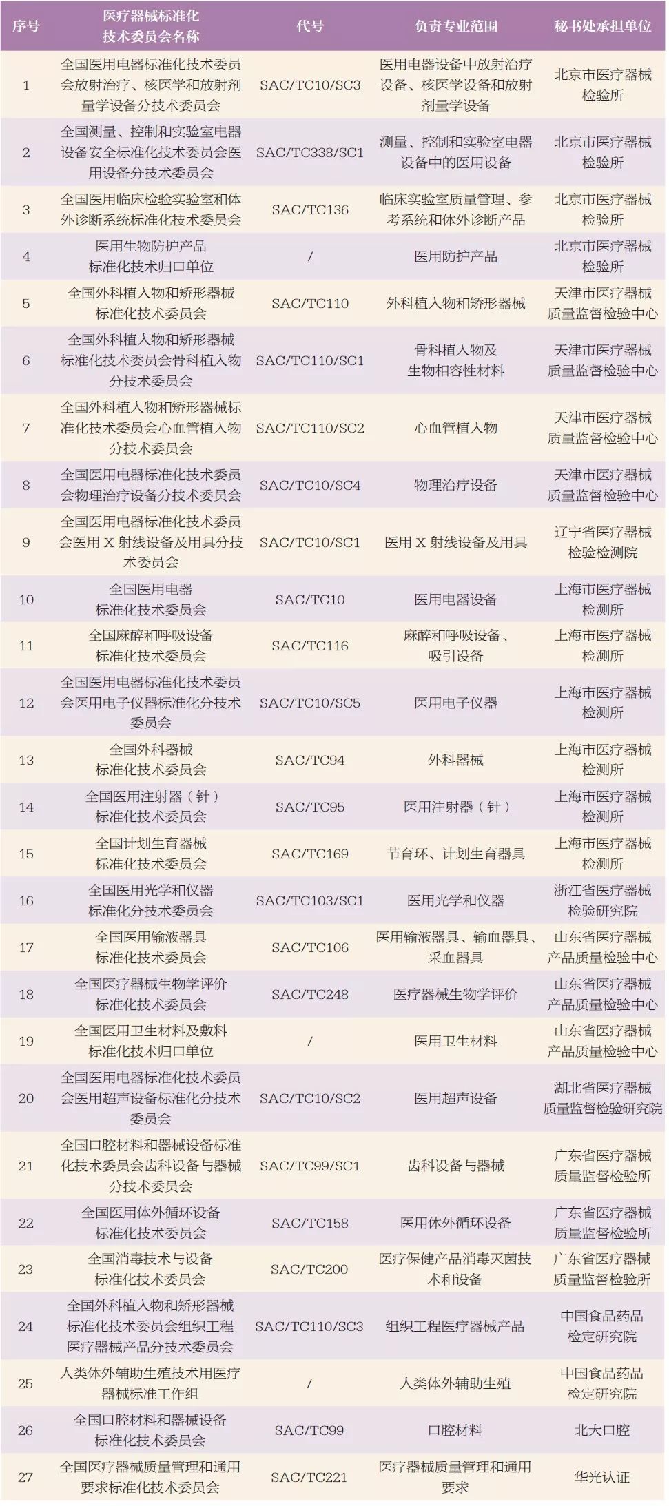 表1 醫(yī)療器械標(biāo)準(zhǔn)化技術(shù)委員會(huì)基本信息分布表