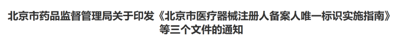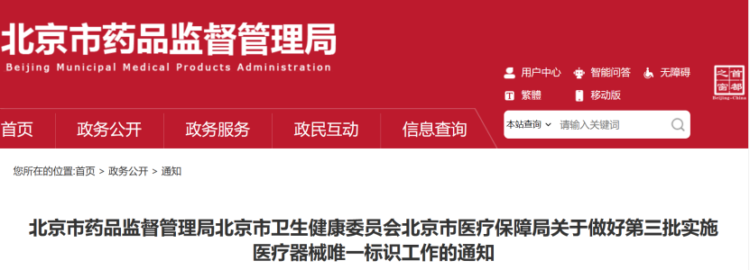 近日,北京市藥監(jiān)局、北京市衛(wèi)健委、北京市醫(yī)保局發(fā)布《關(guān)于做好第三批實(shí)施醫(yī)療器械唯一標(biāo)識(shí)工作的通知》(以下簡(jiǎn)稱《通知》),北京市藥監(jiān)局還制定印發(fā)了《北京市醫(yī)療器械注冊(cè)人備案人唯一標(biāo)識(shí)實(shí)施指南》《北京市醫(yī)療器械經(jīng)營(yíng)企業(yè)唯一標(biāo)識(shí)實(shí)施指南》《北京市醫(yī)療機(jī)構(gòu)醫(yī)療器械唯一標(biāo)識(shí)實(shí)施指南》。