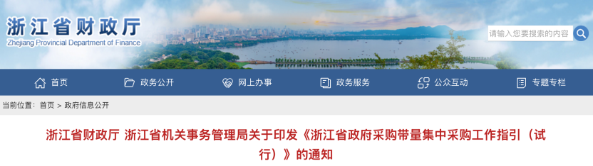 近日,浙江財政廳發布《浙江省財政廳浙江省機關事務管理局關于印發<浙江省政府采購帶量集中采購工作指引(試行)>的通知》,指引自2025年7月1日起施行。