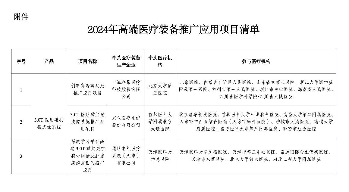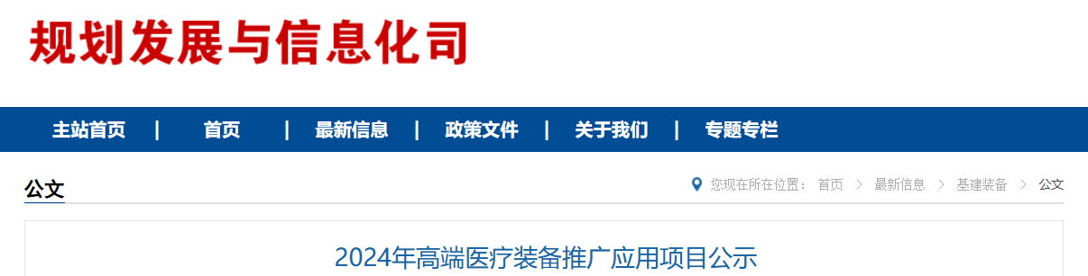 近日,國家衛健委發布《2024年高端醫療裝備推廣應用項目公示》。