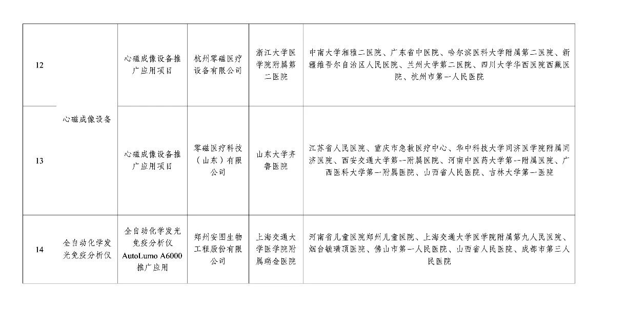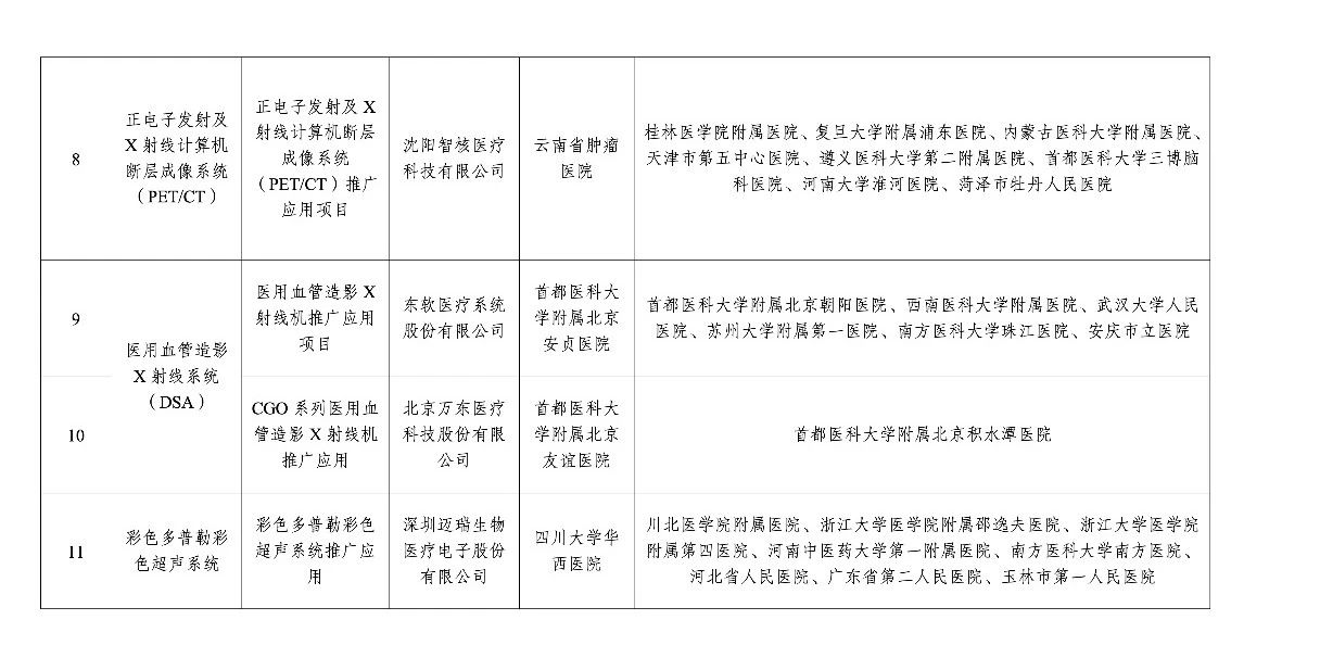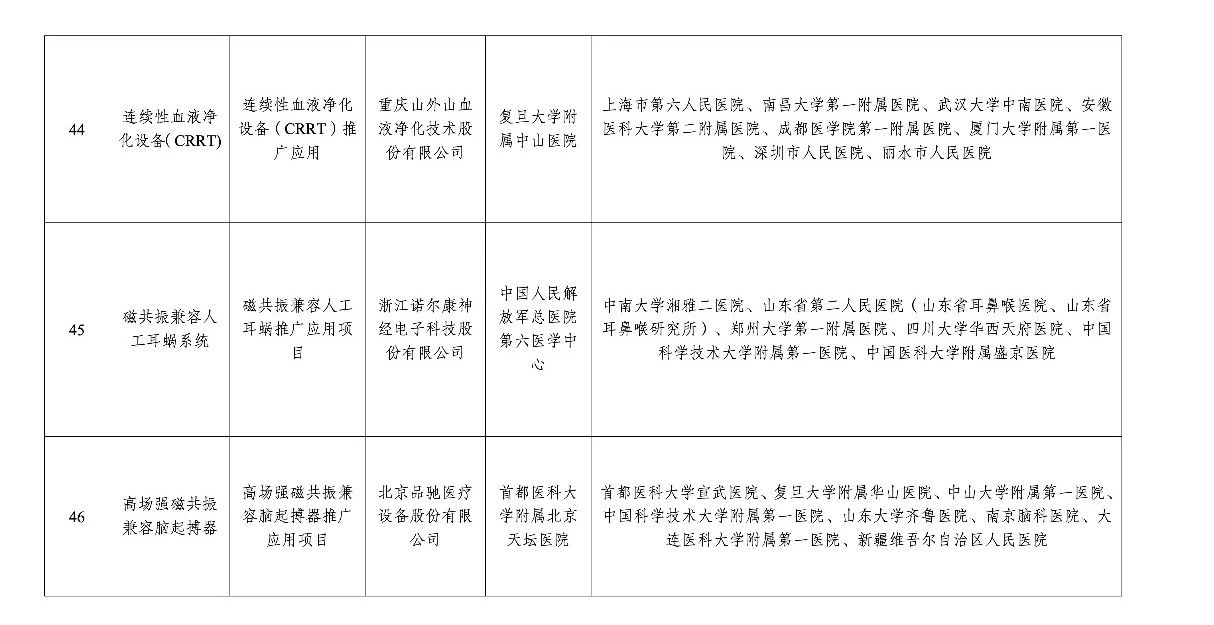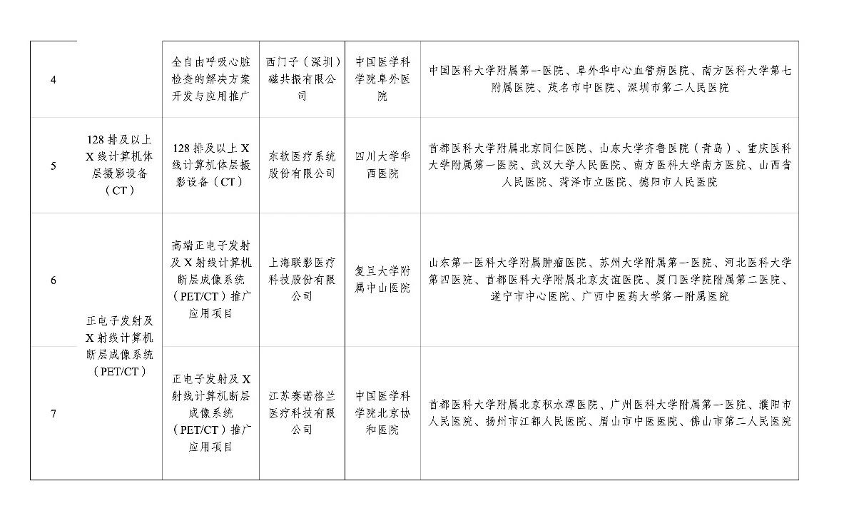 其中涉及磁共振、CT、PET/CT、DSA、彩超、全自動化學發光免疫分析儀、腔鏡手術機器人、神經外科手術導航機器人、ECMO、人工耳蝸等多種品類。