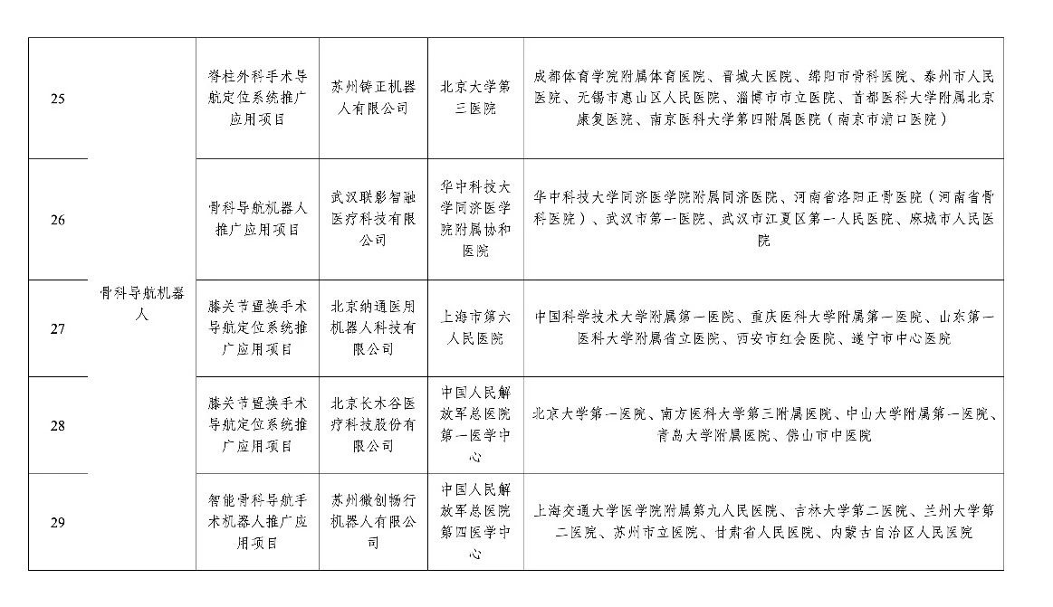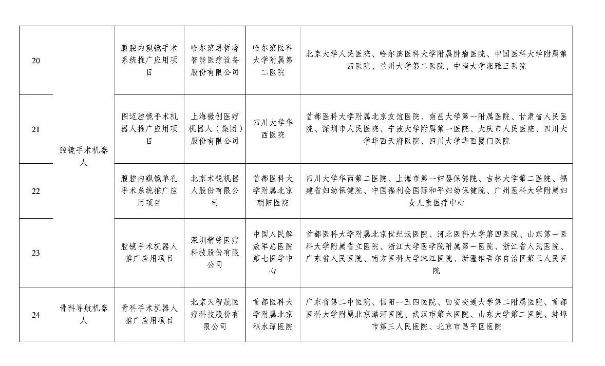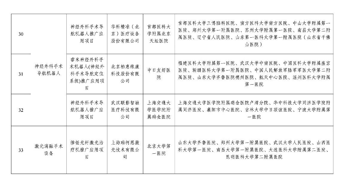 從項目清單可見,大批高端設備已廣泛應用在國內頭部醫院,影像領域包括聯影醫療、東軟醫療、邁瑞醫療、西門子醫療、GE醫療等;診斷檢驗領域包括安圖、亞輝龍、新產業等;手術機器人領域包括微創、術銳、精鋒、天智航等。