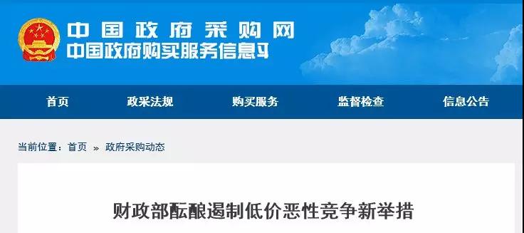 近日,中國政府采購網(wǎng)發(fā)布最新通告《財(cái)政部醞釀遏制低價(jià)惡性競爭新舉措》。