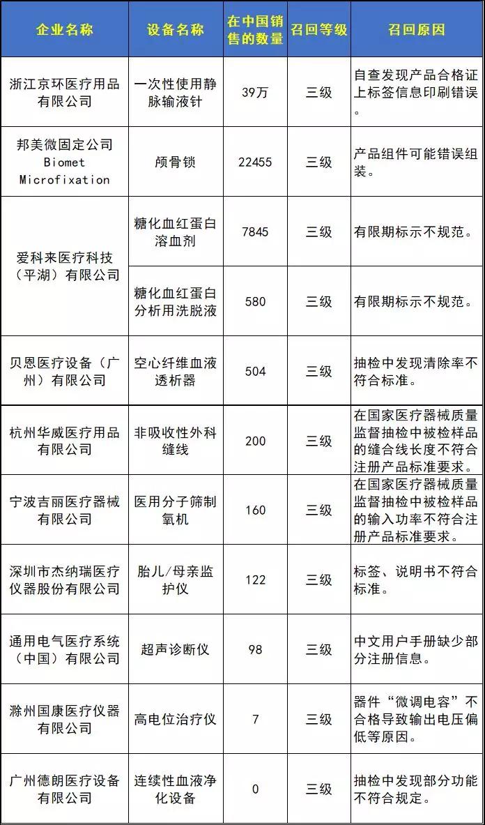 10家醫(yī)療器械公司召回了過萬件產(chǎn)品