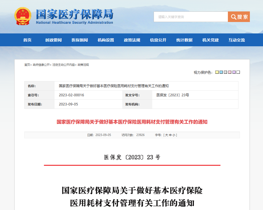 今日(9月5日),國家醫保局發布《國家醫療保障局關于做好基本醫療保險醫用耗材支付管理有關工作的通知》(以下簡稱《通知》)(文末附全文)。
