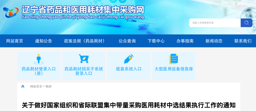3月10日,遼寧省藥品及醫(yī)用耗材集中采購網(wǎng)發(fā)布《關(guān)于做好國(guó)家組織和省際聯(lián)盟集中帶量采購醫(yī)用耗材中選結(jié)果執(zhí)行工作的通知》。