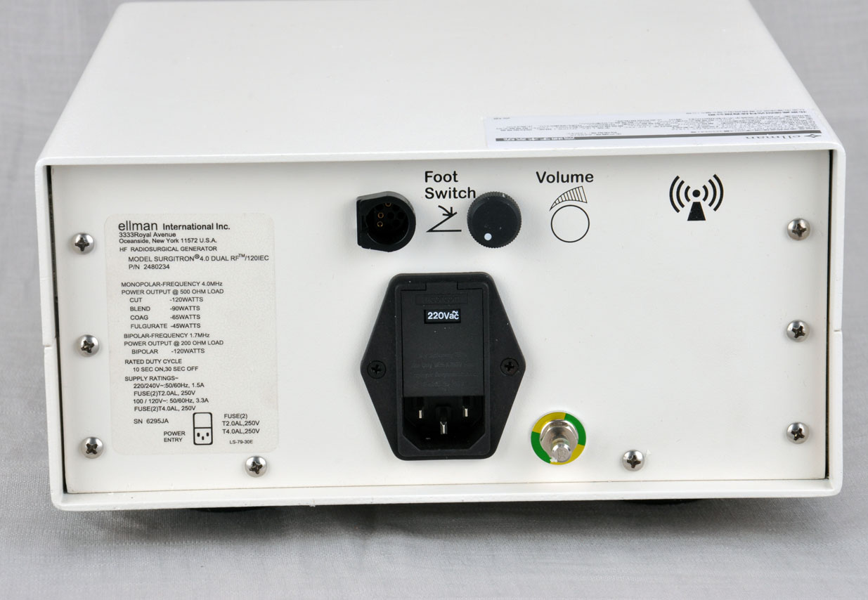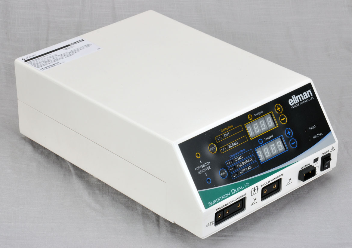 產(chǎn)品由主機(120IEC、90IEC)、腳踏開關(DF-FSC)、手柄(IEC-3FHPB)組成。兩種型號最大輸出功率不同。額定輸出頻率:單極4.0MHz、雙極1.70MHz。單極模式額定負載500Ω,120IEC型號最大功率:切割120W、切割/凝固90W、止血60W,90IEC型號最大功率:切割90W、切割/凝固65W、止血45W;雙極模式額定負載200Ω,120IEC型號最大功率120W,90IEC型號最大功率90W。