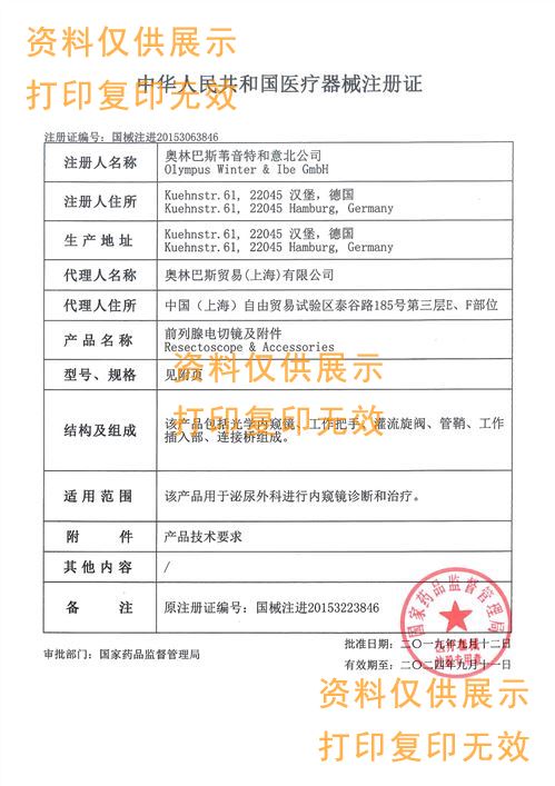 該產品包括光學內窺鏡、工作把手、灌流旋閥、管鞘、工作插入部、連接橋組成。