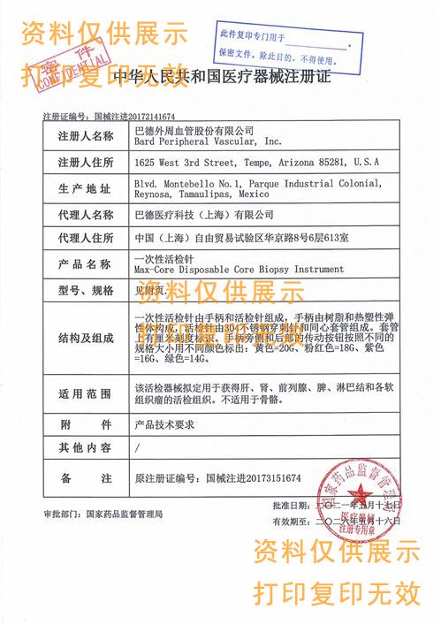 美國BARD一次性活檢針MC2020,規格:20g(0.9mm)x20cm,超薄壁